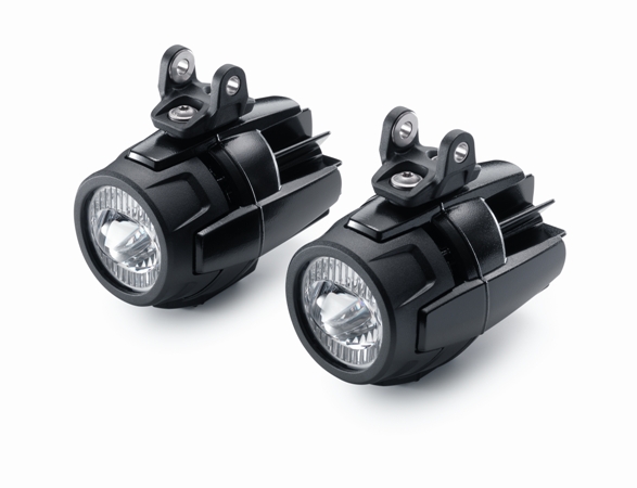The two auxiliary lights, with their wide angle of illumination, significantly improve illumination of the carriageway. This increases safety when riding at night. Easily fitted and homologated for road use.