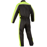 Yksiosainen sadepuku 100 % vedenpitävästä polyesterimateriaalista, joka soveltuu käytettäväksi moottoripyörävaatteiden päällä.
