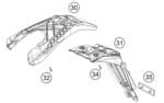 Ylempi kilven teline johon varsinainen kilpiteline (osanumero 78108016050 toisessa kuvassa osa nro 31) kiinnittyy.